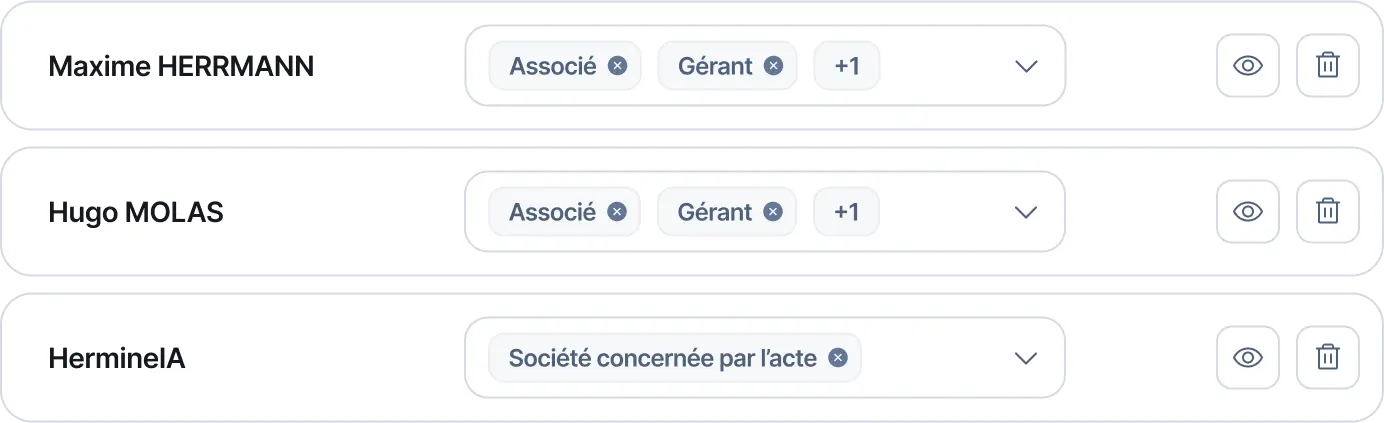 Ne perdez plus de temps à répéter plusieurs fois les données de vos clients dans les mails, actes et fiches de renseignement : HermineIA centralise les informations et vous permet de ne plus avoir à saisir aucune donnée client.